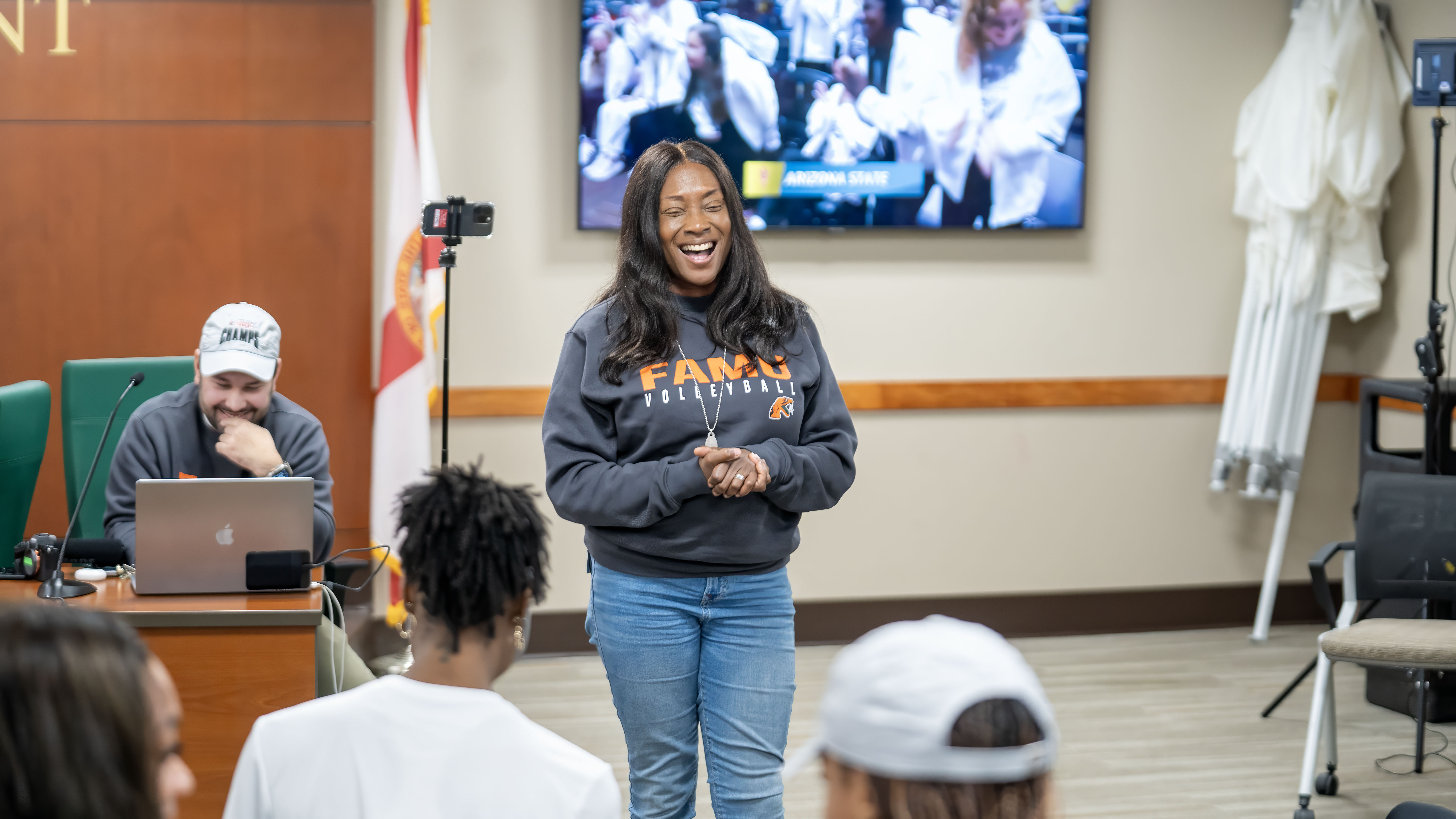 The Lady Rattlers gathered in the FAMU Senate chambers to watch the NCAA Selection Show and were featured on a live feed of the show.